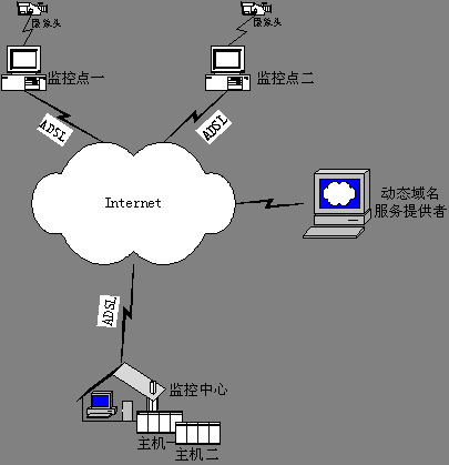原來基于固定IP地址的數(shù)字視頻網(wǎng)絡(luò)監(jiān)控系統(tǒng),幾乎可以直接使用這種模式。當(dāng)然,原來如果是預(yù)先配置遠(yuǎn)程監(jiān)控點(diǎn)IP地址的,現(xiàn)在需要改變成預(yù)先配置遠(yuǎn)程監(jiān)控點(diǎn)的Internet域名。編寫程序的時(shí)候只需要調(diào)用相應(yīng)API函數(shù),就可以獲得Internet域名對(duì)應(yīng)的IP地址。